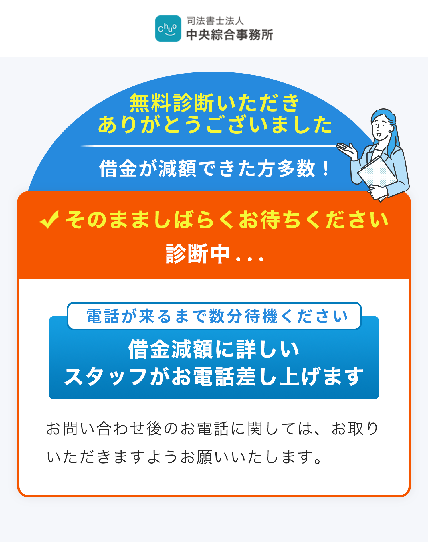 5-30分程度で専門家から診断のご連絡をさせて頂きます。。